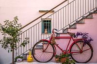 Dit sfeervolle plaatje trof ik aan op Kreta, op de Lassithi Hoogvlakte. Deze fiets met bloemetjes erop stond voor een trap, en leende zich prachtig voor een foto!