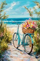 Over ‘Fiets op het strand met bloemenmand’ van Poster Art Shop
