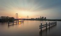 Fietsbrug de Waterjuffer tijdens zonsondergang in Oostwold / Blauwe stad (long exposure opname)