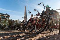 de dam in Amsterdam vol met fietsen met het monument op de achtergrond.