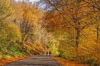 Fietsers in de buurt van Cottessen in Zuid-Limburg met de natuur gehuld in prachtige Herfstkleuren