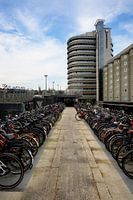 Schuin voor het Centraal station in Amsterdam is een publieke fietsenstalling voor 2500 fietsen.