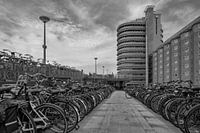 Schuin voor het Centraal station in Amsterdam is een publieke fietsenstalling voor 2500 fietsen.