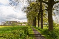 Fietspad Rhijnauwenselaan langs de Kromme Rijn op een zonnige morgen in het voorjaar. Het pad is de verbinding tussen Rhijnauwen en Bunnik,