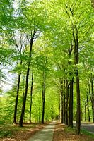 Onder een kathedraal van beukebomen loopt naar mijn idee het mooiste fietspad van Nederland. Het voorjaar heeft de beuken lichtgroene blaadjes gegeven en het zonlicht maakt ze doorschijnend. De bossen van Emmen, Drenthe.