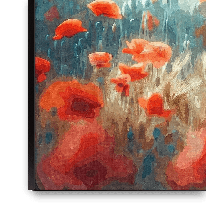 Een nostalgische vintage fiets rust in het midden van een gloeiend klaprozenveld - een symbool van vrijheid, zomer en stil verlangen. De warme lichtreflecties en impressionistische, licht abstracte kleurovergangen geven het tafereel een dromerige diepte. De mandtas gevuld met rode klaprozen versterkt de romantische sfeer en nodigt uit…