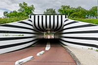 Leuk zwart wit fietstunnel onder de Boutenslaan in Eindhoven. Zeer apart zebrastijl met zwart witte strepen waardoor er een extreem patroon ontstaat