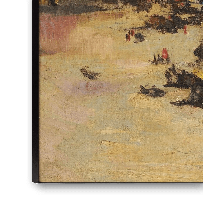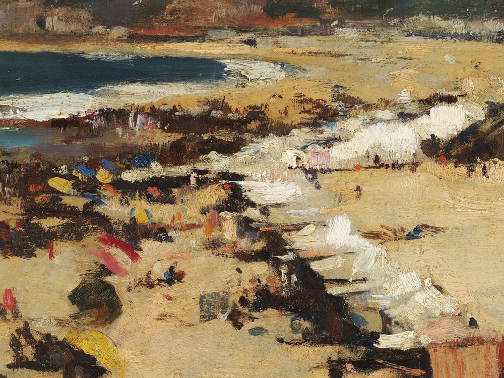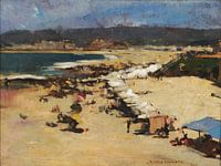 Het strand van Figueira da Foz, Mário Augusto (1935) Mário Augusto vereeuwigt Figueira da Foz en zijn lange zandvlakte. Het schilderij is gemaakt vanuit vogelperspectief en toont het volledige zandstrand met de parallel lopende zee.