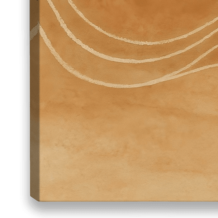 Dit minimalistische waterverfwerk nodigt de kijker uit tot verstilling en verbeelding. In warme aardetinten en zachte, vloeiende vormen ontstaat een abstracte compositie die rust en balans uitstraalt. Subtiele witte krijtstrepen voegen een speels textuuraccent toe en geven het werk een gelaagde, bijna poëtische diepte.
