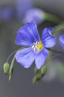 Alsof ze uit een droom komt, rijst deze filigraan blauwe bloem met delicate anut op uit het zachte licht. De fijne bloemblaadjes glinsteren zachtjes. Mooie details en zacht bokeh, fragiel en toch vol expressie. Een moment vol poëzie in blauw.