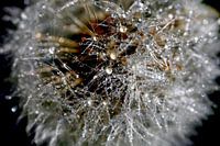 Filigraan paardenbloem met dauwdruppels