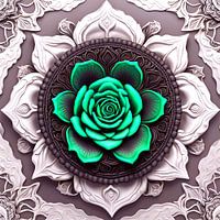Een filigraan vintage mandala met een groene rozenbloesem in het midden.