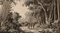 Het beeld van de Filipijnen in een bos met spelende kinderen wordt getransformeerd door een palet van sepia-tinten. De warme bruine tonen geven het tafereel een nostalgische, tijdloze sfeer. De bomen omringen het bos met hun statige silhouetten, waarbij de sepia-kleur de natuurlijke schoonheid en rust van het Filipijnse landschap benadrukt.