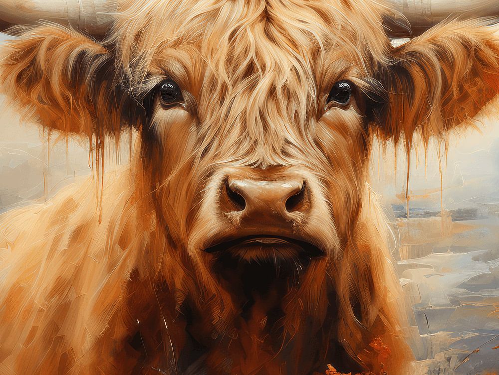Dit prachtige fine art kunstwerk toont een Schotse Hooglander in zachte oranje tinten, waardoor een sfeer van warmte en rust ontstaat. De majestueuze uitstraling van de Hooglander is vastgelegd met oog voor detail en precisie. Dit kunstwerk past perfect in een landelijk, rustiek of natuurlijk geïnspireerd interieur. De lichte en oranje tonen roepen een gevoel van sereniteit op en brengen de charme van het Schotse platteland naar binnen. Voor vragen neem gerust contact op!