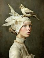 Fine art portret: "Me and my bird". Kies zelf het formaat en materiaal van dit werk. Je bent verzekerd van een echte blikvanger in je interieur!