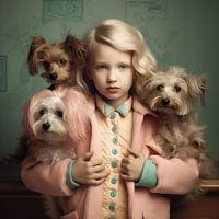 Fine art portret "Me and my dogs". Dit werk is onderdeel van een serie. Mocht je de ruimte hebben, dan is het heel gaaf om meerdere van deze werken in dezelfde ruimte of hetzelfde gebouw te hangen. Maar ook alleen komen deze werken heel goed tot hun recht! Met dit werk haal je echt iets bijzonders in huis: fine art met een knipoog ;-) Om de andere werken te zien, typ je in de zoekbalk hierboven "Me and my dogs". Er zijn ook series met katten, vogels en paarden. Dit werk komt het best tot zijn recht op dibond, aluminium of artframe.