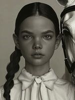 Fine art portret "Me and my horse". Portret in een donkere "moody" sfeer van een meisje met zwart haar en een witte blouse, samen met haar witte paard. Een echte blikvanger voor je interieur!