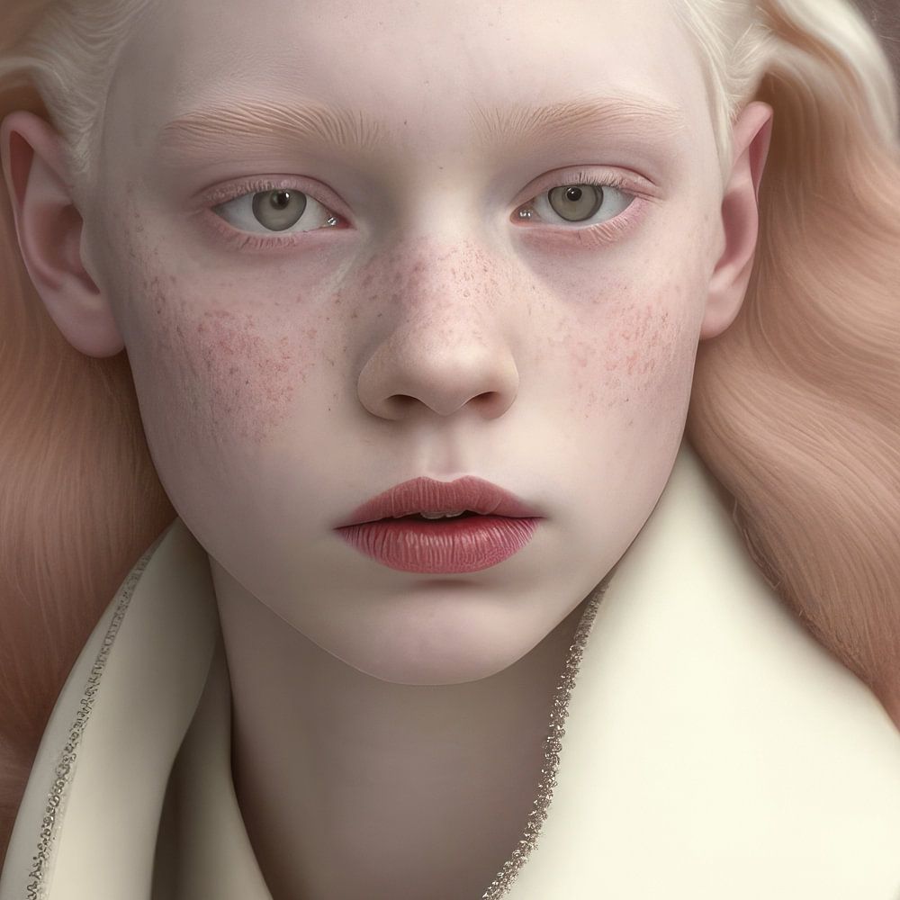 Ik maakte dit portret als onderdeel van de kunstserie "Albinisme". Alle portretten zijn zorgvuldig digitaal samengesteld en kunnen zowel afzonderlijk als samen aangeschaft worden. Om de andere portretten te zien typ je in de zoekbalk van mijn shop "Albino". Deze portretten komen het best tot hun recht wanneer je ze afdrukt op dibond, aluminium of artframe.