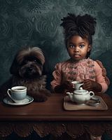 Fine art portret "Me and my dog". Dit werk is onderdeel van een serie fine art portretten van kinderen met hun hond. Digital art. Kies zelf het formaat en materiaal voor dit werk. Dit werk bezorgt je een glimlach :-)