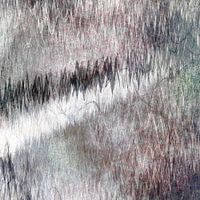 Abstract digitaal schilderij met complexe texturen en meerdere kleuren, waardoor een dynamisch en betoverend landschap ontstaat.