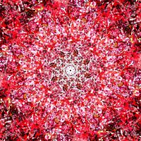 Een vurige spiraal waar de energie welhaast van af spat, gebaseerd op een foto van een rode esdoorn en een bloeiende prunus in de lente.
