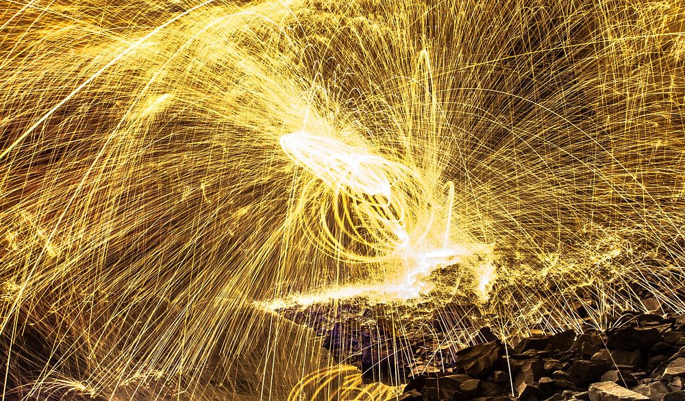 Vuurwerk in een verlaten steengroeve Lightpainting