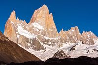 Close-up van de berg Monte FitzRoy in Argentijns Patagonië, gefotografeerd bij zonsopkomst bij Laguna Capri in het park Los Glaciares.