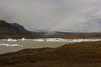 Het gletsjermeer Fjallsarlon, ten zuiden van de Vatnajokull. Hier brokkelen stukken ijs ter grootte van auto?s van de gletsjer die terecht komen in dit gletsjermeer en vervolgens via een rivier afgevoerd worden naar de Atlantische Oceaan.
