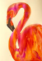 illustratie van een flamingo gemaakt met ecoline en Oost-Indische inkt op kartonpapier. Een flamingo staat symbool voor plezier in je leven hebben, voor een sociaal leven en het verkeren in gezelschap van anderen. De flamingo staat – niet geheel verrassend – ook voor evenwicht en balans. Anders denken en anders zijn, is ook wat de flamingo betekent.