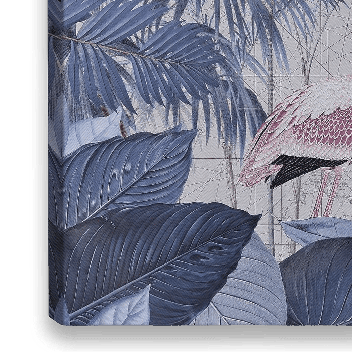 Flamingo's met tropische vegetatie en historische kaart in blauwe kleuren, ideaal voor natuurliefhebbers, avonturiers, reizigers en ontdekkingsreizigers