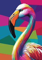 Dit flamboyante flamingoportret barst van de gedurfde pop-art flair - de elegante S-vormige nek en zuurstokroze veren zijn gedrenkt in levendige tinten en elektrische tinten. De trotse houding en sierlijke vorm van de vogel worden geaccentueerd door contrastrijke patronen, waardoor een opvallende balans van stijl en attitude ontstaat. Ideaal voor ruimtes waar zowel raffinement als plezier nodig is. Dit stuk maakt van de flamingo een stralend icoon van tropische charme en chique energie.