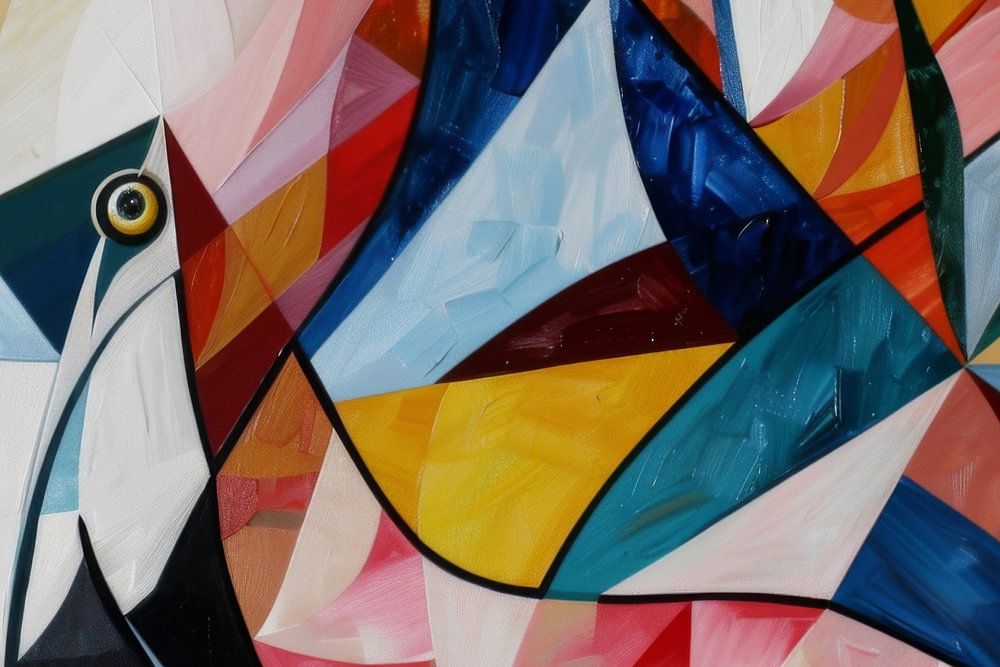 Dit dynamische kunstwerk combineert de gratie van een flamingo met de moderne esthetiek van het kubisme. De felle kleuren en geometrische vormen creëren een fascinerende compositie die beweging en energie uitstraalt. Ideaal voor kunstliefhebbers die van felle kleuren en avant-gardistische stijlen houden. Dit werkstuk is perfect om woon- of werkruimtes op te fleuren met een vrolijke en toch geraffineerde toets. Het springt onmiddellijk in het oog en brengt kleur en creativiteit in elke omgeving.