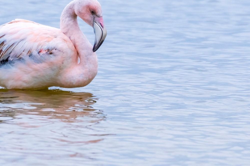 De Flamingo eet voornamelijk kreeftjes en garnalen, waardoor ze goed te herkennen zijn aan de roze kleur.