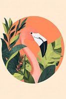 Dompel jezelf onder in een tropische droomwereld waarin een gestileerde flamingo opvalt tussen weelderig groen. De warme oranje tinten op de achtergrond geven het beeld levendigheid en licht. Als charmant statementstuk past het perfect in een moderne woonkamer en voegt het een vleugje exotiek toe aan elke kamer.
