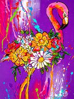 Kleurrijke flamingo met bloemen in paars van de kunstenaar Renate Rolefes.