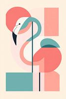 Een harmonieus samenspel van zachte pasteltinten en geometrische vormen, met daarbovenop een gestileerde flamingo, geeft dit kunstwerk een levendige, moderne flair. Deze combinatie van elegantie en speelsheid is perfect voor je woonkamer om een gezellige en uitnodigende sfeer te creëren.