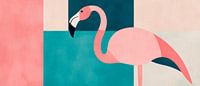 Een harmonieuze compositie van zachte pastelkleuren en een gestileerde flamingo voegt een vleugje elegantie en speelsheid toe aan elke kamer. De levendige afbeelding, omringd door geometrische vormen, maakt het de ideale blikvanger voor de woonkamer of een creatief kantoor, waar het inspiratie en frisheid brengt.