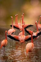 De Flamingo's zijn druk bezig om te imponeren en hebben blijkbaar geen last van de kou.
