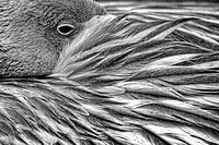 Hier nogmaals de rustende flamingo, maar nu in zwart-wit.
