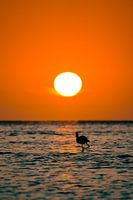 Flamingo's bij zonsondergang in Walvis Bay Namibië, Afrika