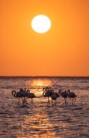 Flamingo's bij zonsondergang in Walvis Bay Namibië, Afrika