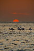 Flamingo's bij zonsondergang in Walvis Bay Namibië, Afrika