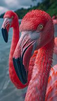 Flamingo's close up staand panorama schilderij die een luxe toevoeging zal zijn aan elke ruimte. Met zijn unieke en stijlvolle uitstraling is het een ware eyecatcher. De schitterende kleuren en het bijzondere ontwerp maken dit kunstwerk 100% uniek en origineel. Het is de perfecte fotoprint om je interieur helemaal af te maken.