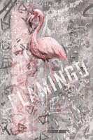 Flamingo poster in street art stijl. Behang een strook van onder tot boven op je muur en haal een heuze roze street art stijl in huis. Dit kunstwerk is digitaal getekend met verschillende kwasten in verschillende roze en grijs tinten. Leuke illustratie voor liefhebbers van tropische vogels en graffiti stijl. Het grijs en roze geeft dit werk een chique look die past in bij een moderne, industriële maar ook bij een urban interieur stijl. In deze grafische street art stijl wordt een afbeelding van een flamingo gecombineerd met tekst, handgeschreven als ook in getypte letters. De afbeelding heeft een staande oriëntatie (ook wel portrait genoemd). Door de hoge resolutie van dit digitale artwork is het kunstwerk ook op als scherpe print op groot formaat te bestellen. Kies het materiaal wat bij jouw interieur stijl past, zoals canvas doek, print op staal, of print op hout voor een organische look.