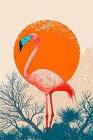Een stralende zonsondergang omlijst de majestueuze flamingo, die elegant schittert in zijn kleurrijke verenkleed. De zachte contouren van het exotische landschap geven het schilderij een tropisch tintje dat meteen frisheid en levensvreugde uitstraalt. Dit schilderij is ideaal voor in de woonkamer en brengt een vleugje vakantie en natuur in huis.
