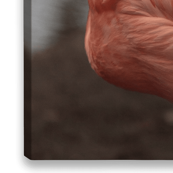 Als de flamingo slaapt, zie je meestal wel een oogje. Bij deze flamingo niet.Toch heeft zo'n roze veren bol zonder oogje ook wel iets. het roze is in vele tinten aanwezig, waardoor je toch weer een heel kleurenpallet te zien krijgt.