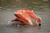 Deze Chileense flamingo, was aan een wasbeurt toe.