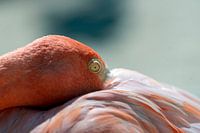 Slapende flamingo wil niet gestoord worden in zijn schoonheidsslaapje. Foto is gemaakt op Aruba.