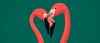 Twee elegante flamingo's vormen een stijlvol hart met hun lange nekken, omringd door een rustgevende, diepgroene kleur. De felroze kleurtonen stralen levensvreugde en exotisme uit. Dit kunstwerk is ideaal voor in de woonkamer, waar het kan dienen als blikvanger en symbool kan staan voor liefde en harmonie.