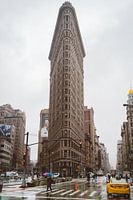 Het Flatiron-gebouw op een regenachtige dag in New York City.